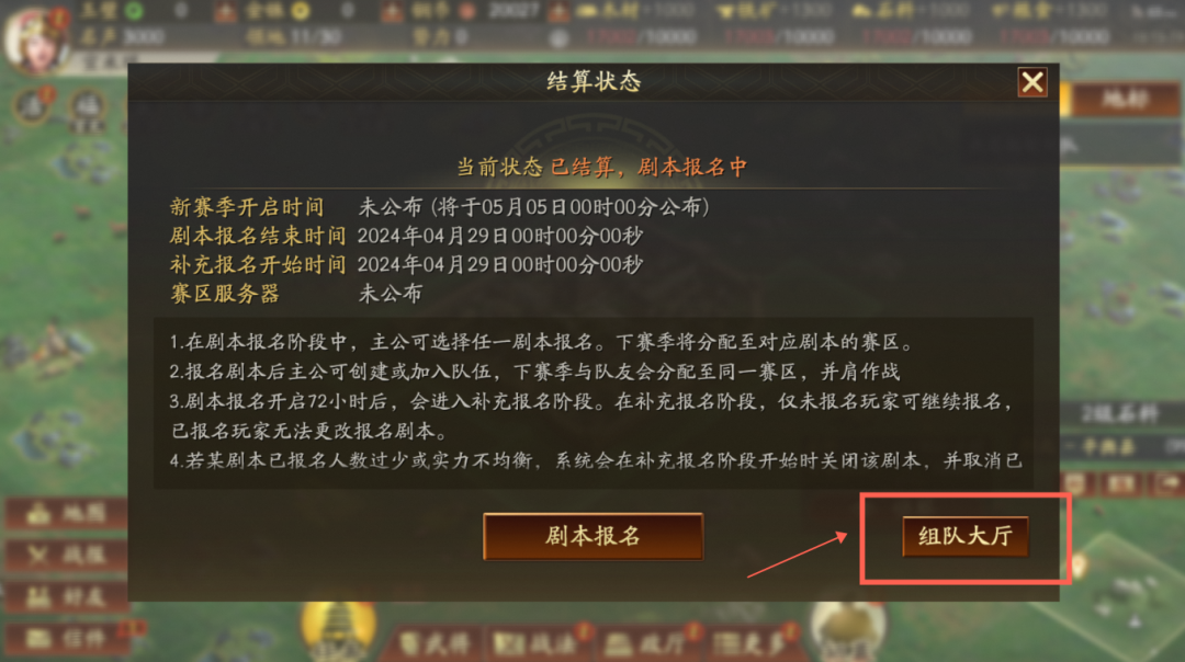 退出组队大厅后,可以通过剧本报名页面右下角重新进入组队大厅。