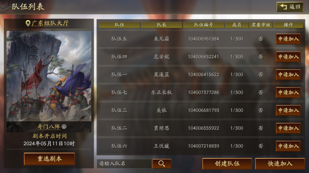 还没找到合适的队友?欢迎主公点击下方小程序,提前加入心仪队伍!在这里提前组好队后,明天就可以跟着小伙伴们一起进组队大厅组队啦!