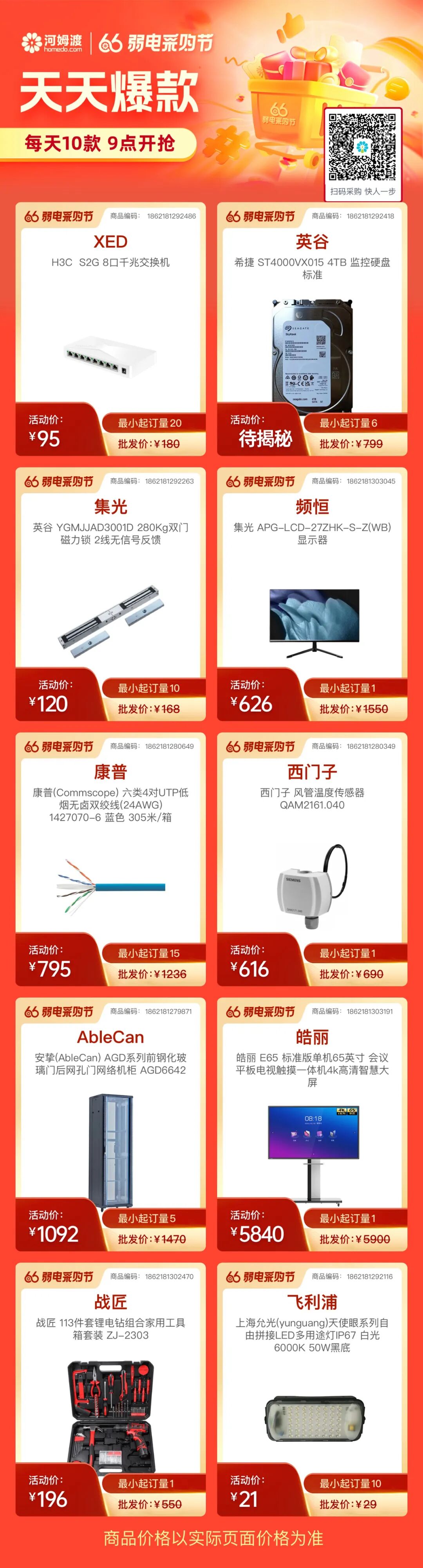2024中国弱电采购节正式启动,河姆渡又又又又来放福利啦!天天爆品、超级秒杀、限时抢购、专场特卖…还有新人红包,狂欢一整月,整月不停歇!