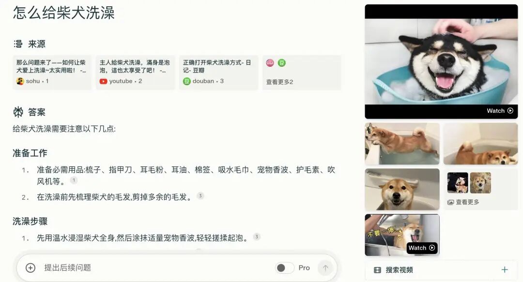 我们以前说「用 Google 搜索」,而介绍搜索的生成式 AI 功能时,Google 自己给博客起的标题是「让 Google 为您进行搜索」,主次微妙地倒转了。过去,Google 展现哪些链接可以回答你的问题。现在,Google 自己用 AI 回答你的问题。传播错误信息的矛头,从信源本身,转移到了引用信源的 Google 身上。这口锅,Google 不得不背。既然幻觉已然是前提,我们应该换个角度看待 AI 搜索,问自己一个问题:是不是我们的预期出了错误?其实在 AI Overview 被批评前,Google CEO 皮查伊就在近日 The Verge 的采访中提到过,「幻觉」问题仍未解决,甚至可以说是大语言模型固有的特征。他认为,大语言模型不一定是了解事实的最佳渠道,但这不代表大语言模型是个废柴,非黑即白的思维不可取,比如它可以创造诗歌、引入搜索。CEO 接受采访也好,I/O 大会也罢,都是在向用户传递一个理念:不要只把 AI 搜索当作对现有网页的简单总结,AI 发光发热的地方还有很多。但 AI Overview 没能让人满意,怪不到用户头上,相比演示,现在的 AI Overview 并非完全形态,很多功能还没有上线。Google 搜索主管 Liz Reid 在 I/O 展示了一个「多步推理」的例子,输入「找到波士顿最好的瑜伽馆,展现优惠信息,以及从灯塔山出发的步行时间」,AI 一步到位,以前要搜索三次的,现在一次就够了。同时,AI Overview 未来还将有「规划」能力,比如要求 AI 策划三天的晚餐,用户可以直接拿到一份食谱,并在中途进行细化,加上「素食」等需求,然后导出到文档。Google 的思路,和其他 AI 搜索产品殊途同归——让搜索更加可视化、交互性和个性化,用人话而非关键词沟通,节省查找信息的时间,回答更加复杂和具体的问题。秘塔提供简洁、深入、研究的不同搜索模式,研究模式甚至可以给出大纲和脑图,生成演示文稿。Perplexity 可以控制搜索范围,既能覆盖整个互联网,也能按照搜索需求,缩小到学术论文、YouTube、Reddit。天工将 AI 搜索作为一个门户,搭载更多的生产力工具,提供了 AI 速读、音乐创作等智能体,等于在 AI 搜索之上,又搭建了一个 AIGC 内容创作平台。平时的大多数问题,天气如何,汇率多少,跳转官网,其实通过简单的传统搜索就可以得到答案。但相对复杂的场景,AI搜索被寄予了厚望,毕竟它比起 ChatGPT 等多了信源,更加方便查证,比起传统搜索,又能进行更多的研究、创作、规划、头脑风暴。与其说是比传统搜索更好的百科全书,不如说更有 agent 的形状。当然,饼画得再多,AI 搜索的幻觉还是让人膈应。为此有人建议,安全起见,用生成式 AI,别只看摘要,再用传统的 Google 搜索检查一下。所谓风水轮流转,但大哥还是大哥。![]()