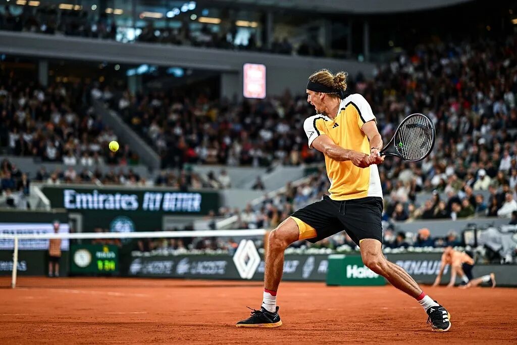 △5月27日,2024法网男单首轮,与纳达尔对阵的兹维列夫。
