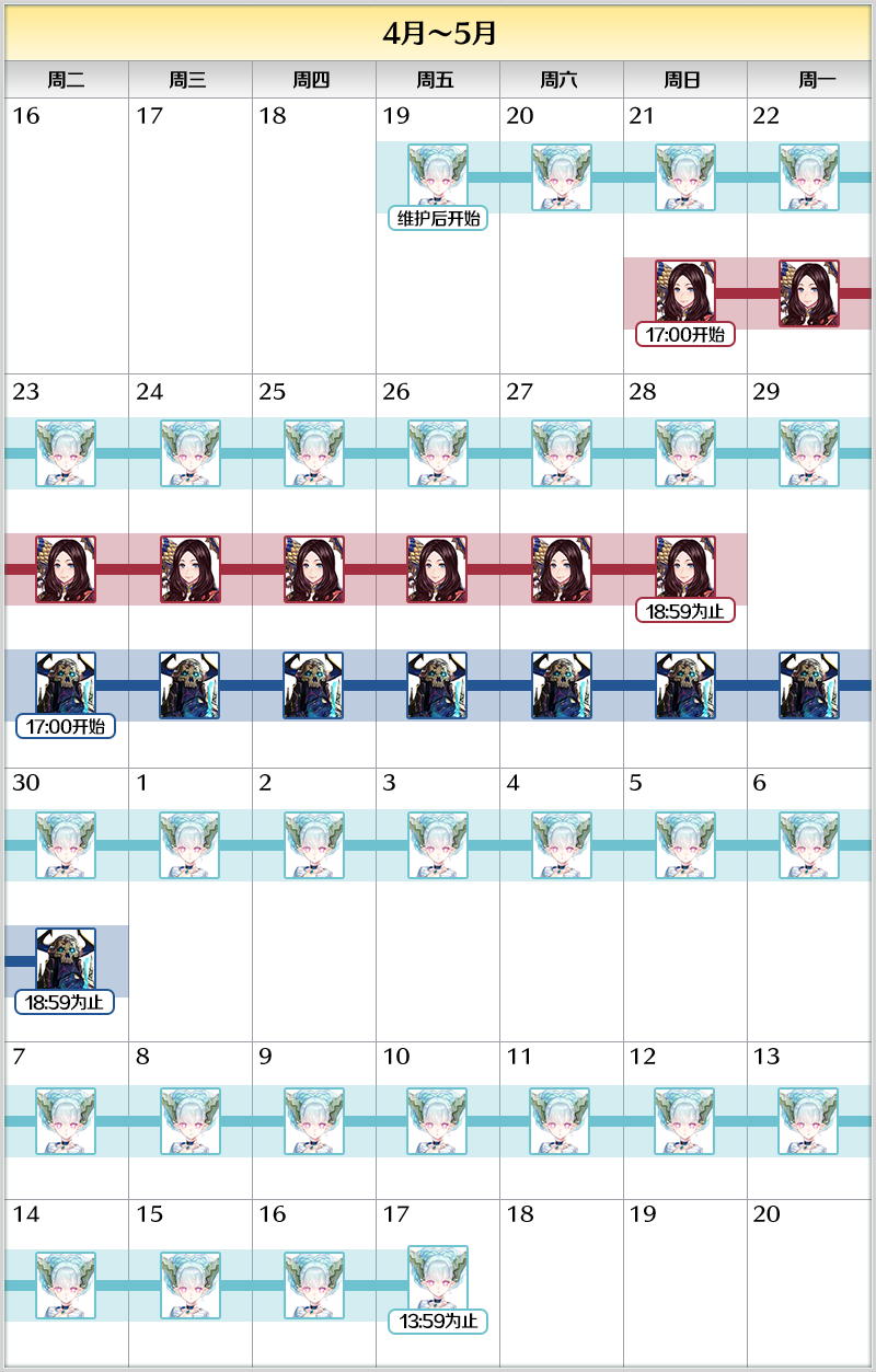 时间:2024年4月19日(周五)维护后~5月17日(周五)13:59为止!