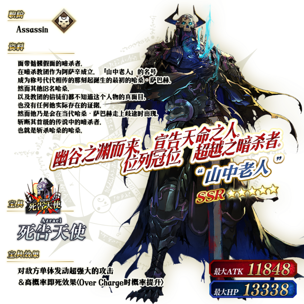 ※以上的「★5(SSR)“山中老人”」的立绘为灵基再临第2阶段。