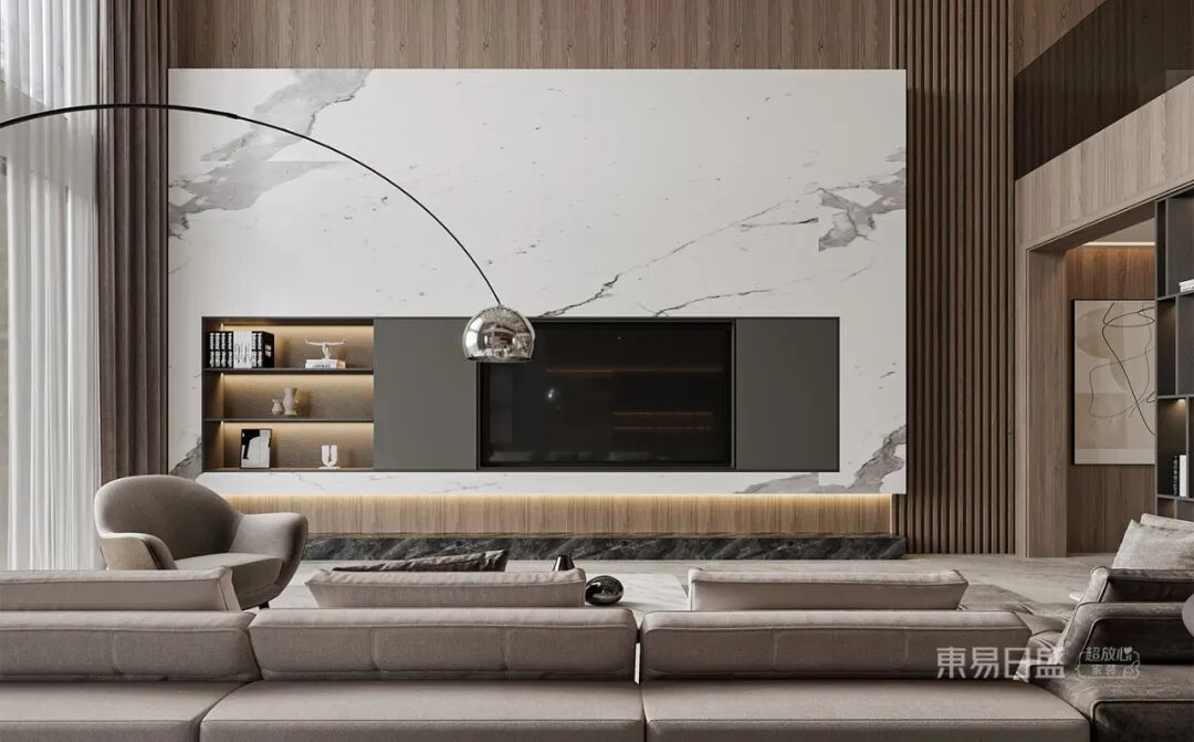 轻奢风格的空间以金属、皮革的中性色调为主,用色彩的纯度传递细腻的质感。造型简洁,线条流畅的家具组合搭配,营造出稳定、协调、温馨的空间感受,满足现代年轻家庭的轻奢需求。