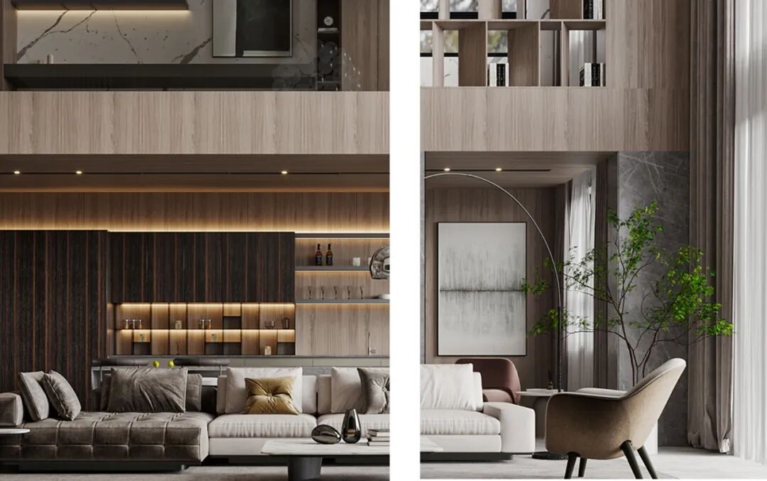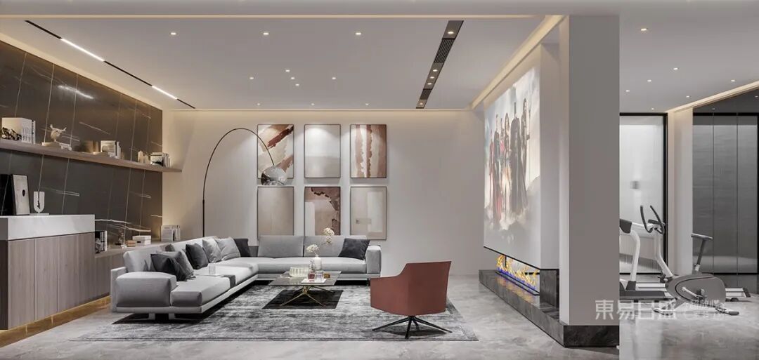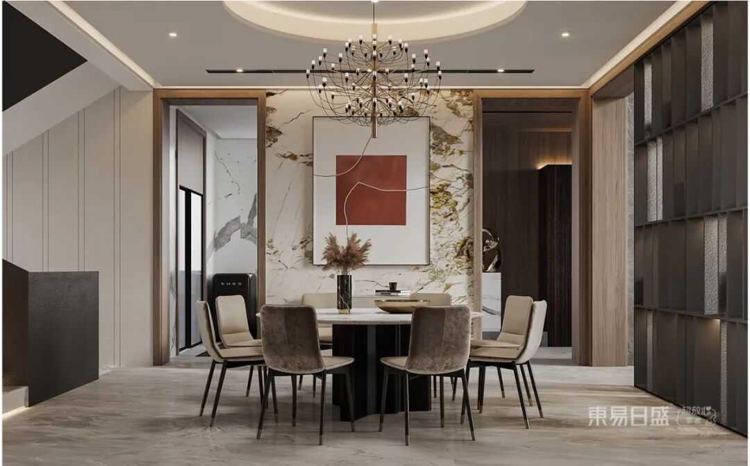 在视觉上舍弃张扬,通过对线条与色块的巧妙应用,营造出轻松的空间氛围,传递“轻奢华、新时尚”的生活理念。