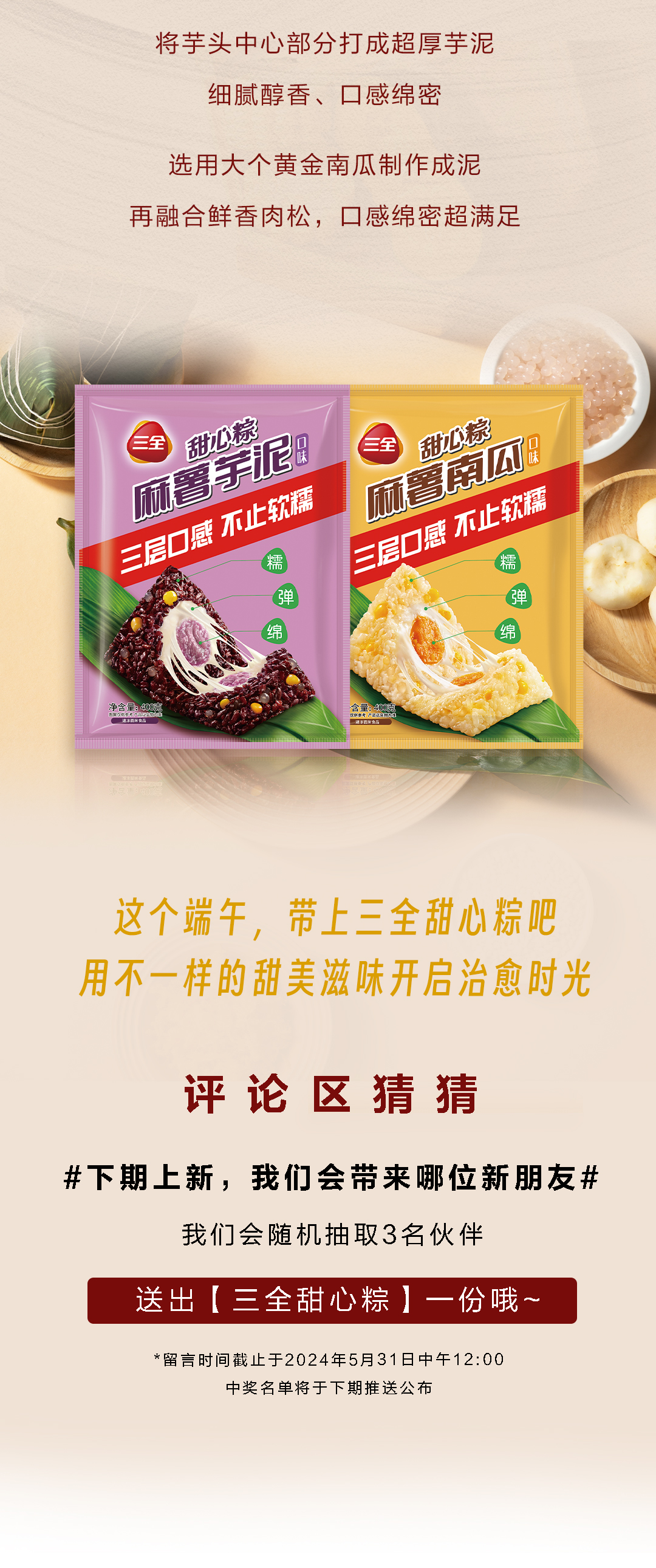 文章内容来源于公众号:三全食品,点此可查看原文,内容版权归相关企业所有,本网站仅供交流学习。若涉及版权问题或存在侵权情况,请及时与我们联系,我们将第一时间进行删除处理。