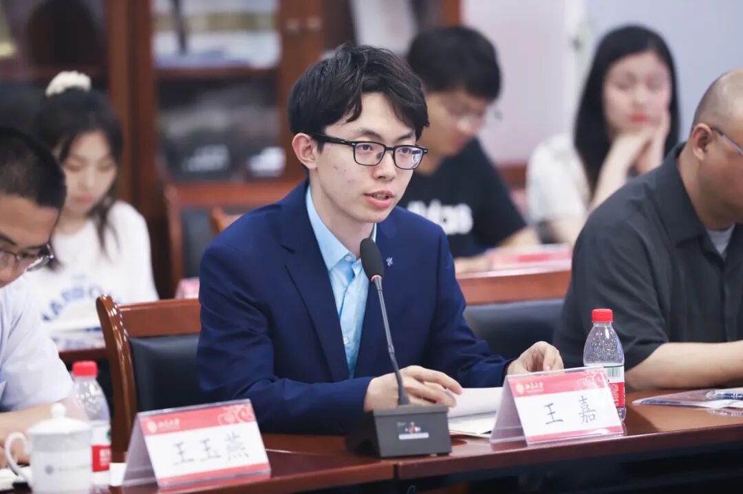 在交流环节,北京大学经济学院经济学系2020级本科生王嘉作为学生代表发言。他从课程学习、学生工作等方面分享了个人的经历与感悟,并重点介绍了自身在团委融媒体中心工作以及作为学生辅导员的经验。