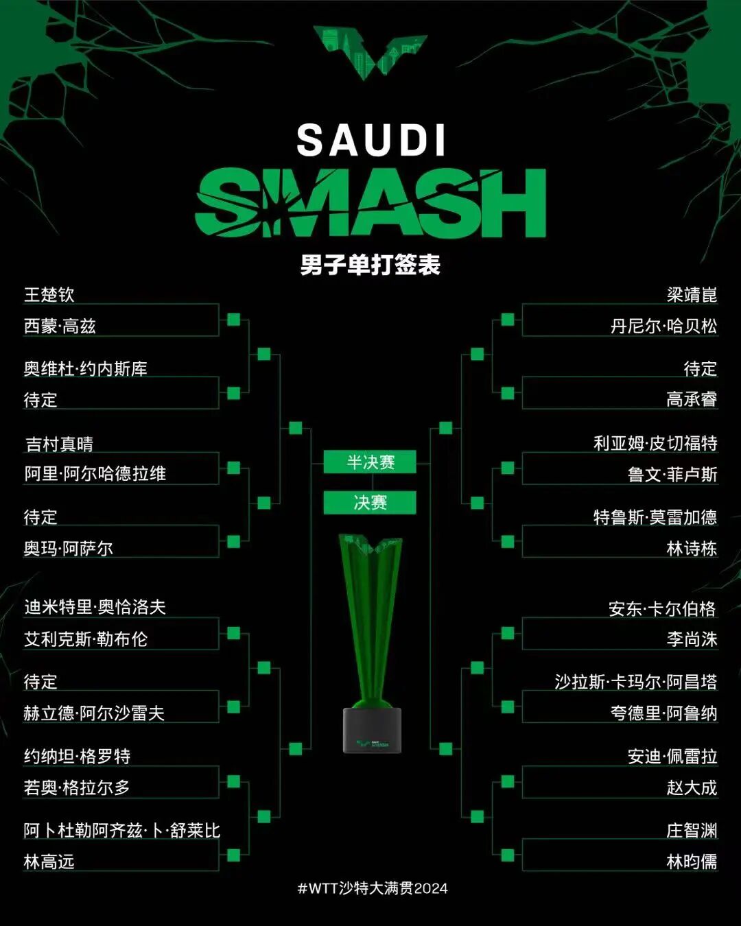 WTT沙特大满贯赛签表今天进行了抽签,中国队队员王楚钦、孙颖莎参加了抽签仪式。目前男女单打签表已经产生,正赛将从5月4日开始。