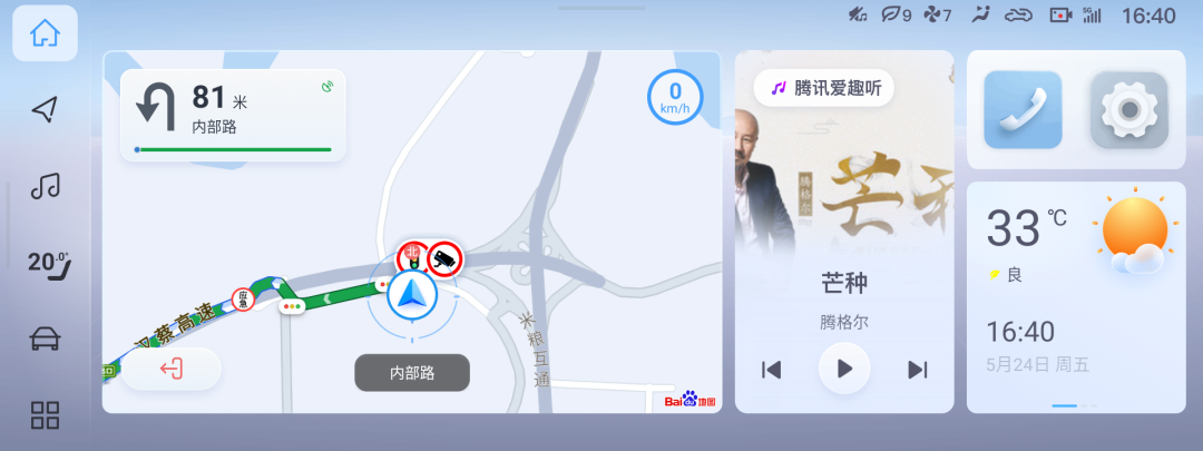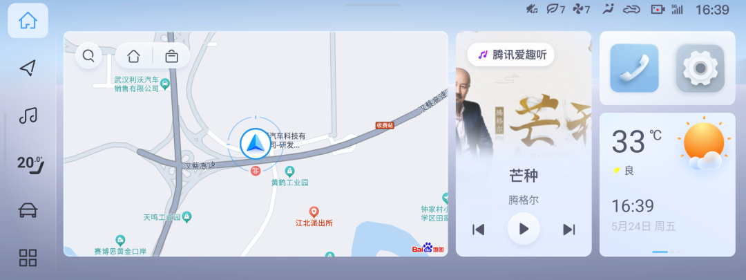 这次的UI焕新主要是更改了中控屏和副驾屏的布局、交互和视觉。采用全新大卡片布局,整体风格焕然一新。