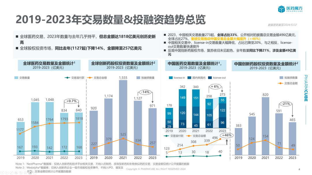 ● 近五年全球BD交易与创新药投融资趋势纵览