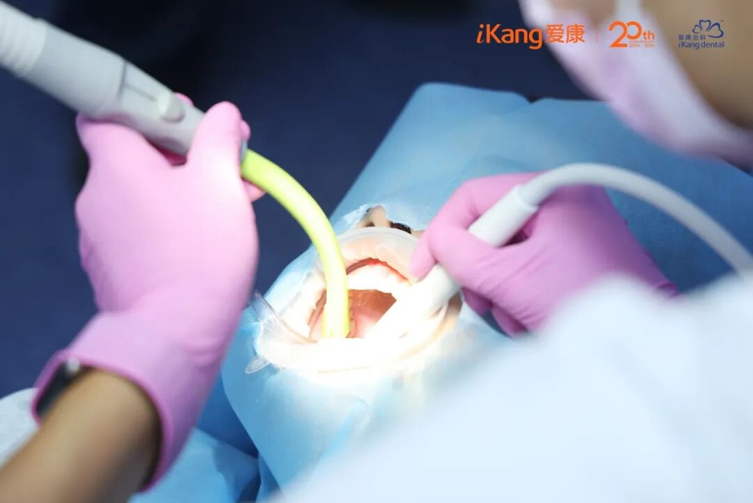 爱康齿科引进瑞士EMS的GBT瑞式洁治技术,GBT瑞式洁治与普通洁牙相比,能够深层洁净牙齿,在洗牙过程中震动感更小、更柔和、更舒适。它的探针尖端部位仅有0.6mm,能在不损伤牙龈的情况下能伸入牙龈内部清洁牙结石,椭圆形的洁牙轨迹还能起到按摩牙龈的功能。