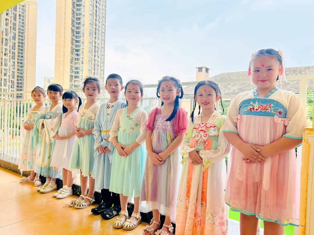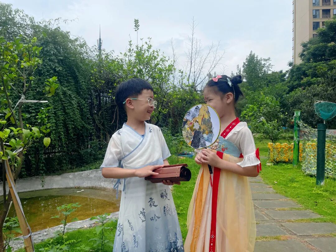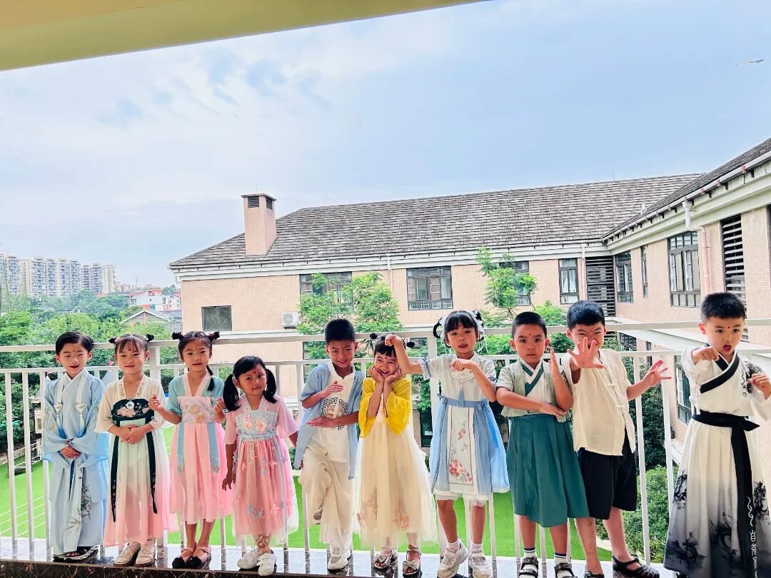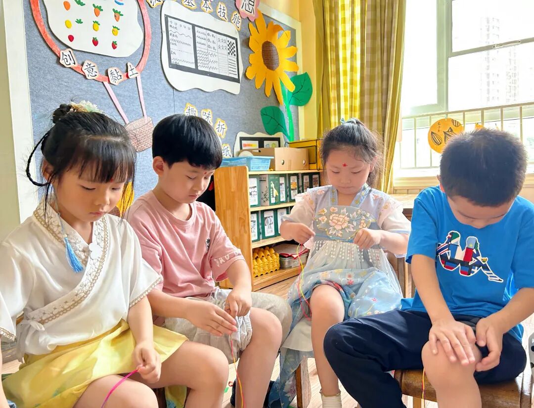 孩子们身着各式各样的传统服饰,在幼儿园里寻找端午的味道。脸上洋溢着灿烂的笑容,表达着对中华传统文化的喜爱。