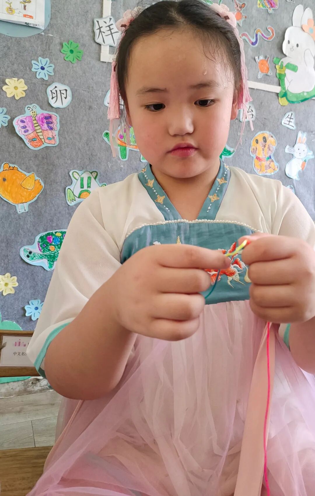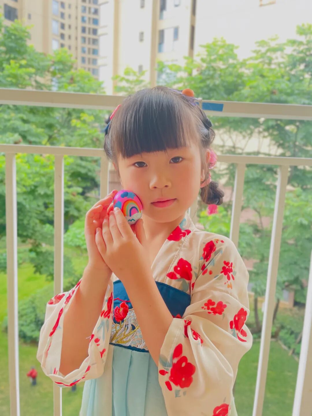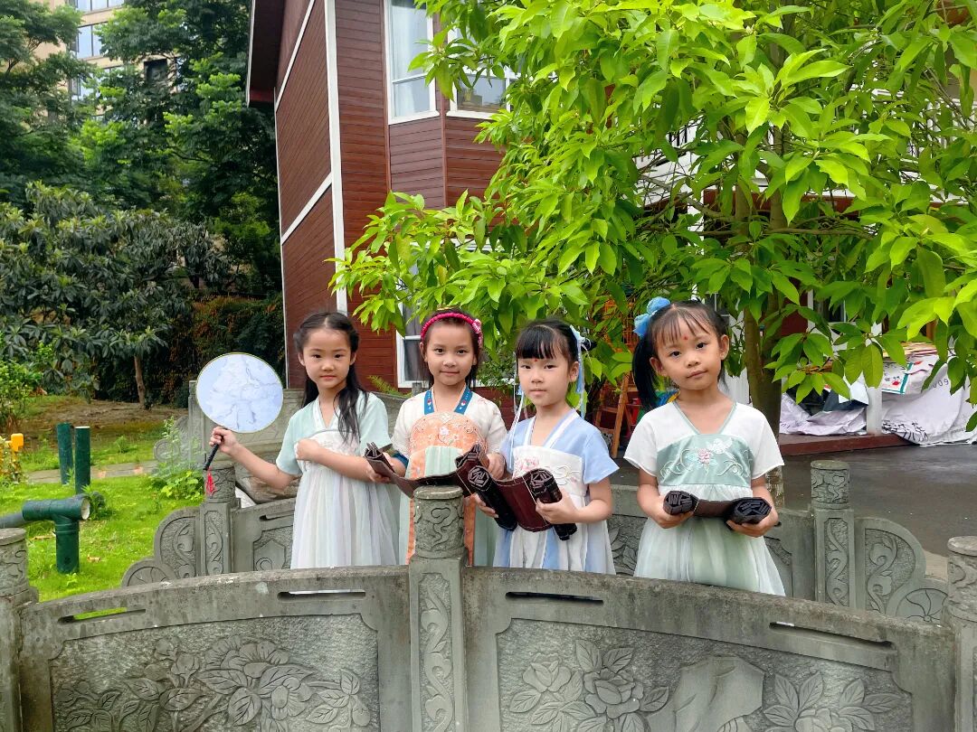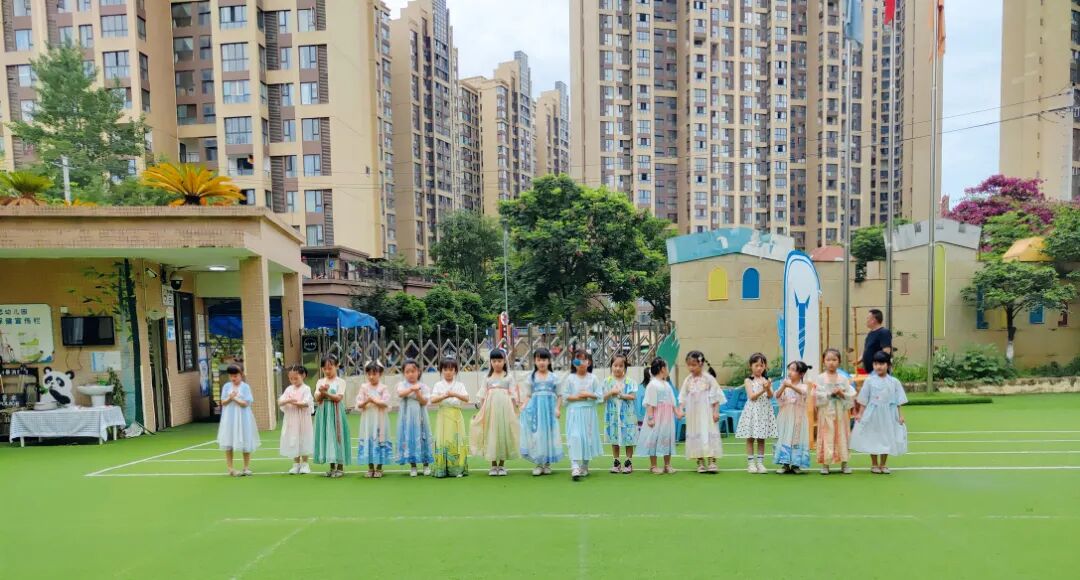 孩子们身着各式各样的传统服饰,在幼儿园里寻找端午的味道。脸上洋溢着灿烂的笑容,表达着对中华传统文化的喜爱。