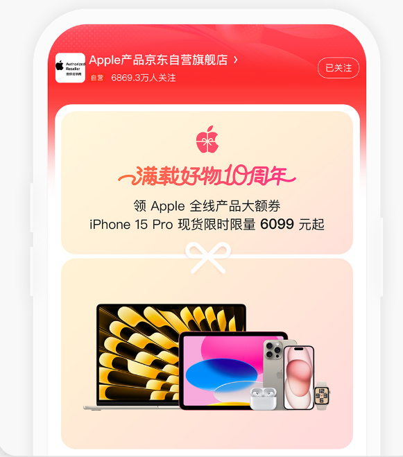 自iPhone正式进入中国市场以来,京东始终是最为可靠的线上渠道。2009年,iPhone正式进入中国大陆市场,同年,京东即获得iPhone网络销售授权,成为中国首家线上销售iPhone的授权平台,也是继亚马逊后的全球第二家。在这个阶段,京东的Apple店铺还叫“专卖店”,类似于中国传统零售的大卖场形式。随着业务的不断扩大,京东和Apple品牌方的合作随后取得了重要突破:2015年,京东成为中国首家线上销售iPhone的官方授权渠道,向厂家直接进货,消费者买得更放心了。此后,Apple在中国大陆市场线上渠道的许多布局,都把京东Apple自营店当作第一落地点:2017年,京东联合Apple品牌首次推出Apple产品京东超级品牌日,刷新京东超级品牌日最高记录;2018年,京东成为线上首个同步官网预售iPhone新品的渠道。京东Apple自营店之所以能不断加深与Apple的合作,既源于Apple产品目标消费人群与京东用户的高重合度,也离不开京东Apple自营店自身的努力。2022年,京东Apple产品自营旗舰店面向iOS用户推出线上付费会员体系A+会员,为用户提供涵盖买、用、换、修多种场景的权益。这套用户解决方案不局限于硬件产品,而是涵盖了软件、服务等在内。要将这套方案落地,需要调动更多的产品和研发资源,并且还需要针对不同产品提供定制化解决方案,非常考验京东的战略定力——能不能、敢不敢、愿不愿牺牲一部分短期利益来进行更长期的投入,所求只是为了让用户的体验达到最佳。从用户出发,做短期收益不高的事情,京东Apple自营店以“客户为先”的态度与Apple品牌方理念契合,合作得以行稳致远。今年618,京东Apple自营店再一次用极具竞争力的价格和贴心的服务,展示了自己的诚意,这既是其十年投入沉淀下的底气,也是其未来继续为消费者提供更好产品、更优服务的动力。
