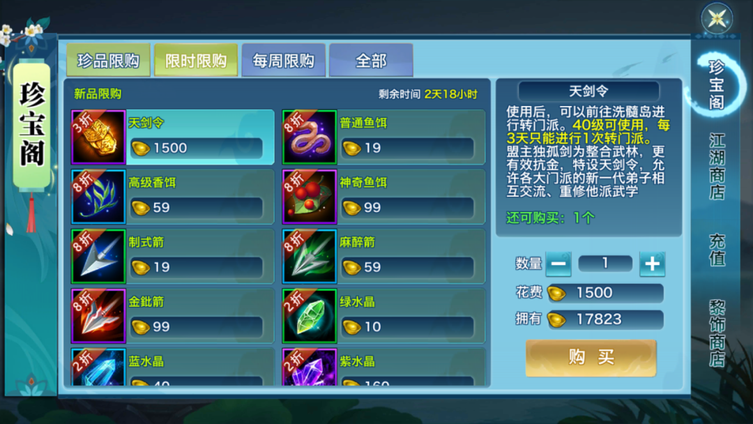 元宝限购4月19日-4月25日限时开启,全场最低2折起售,更有超低价天剑令等你!
