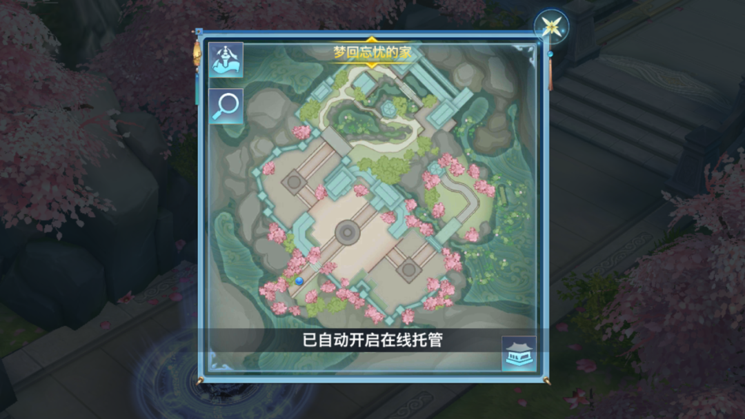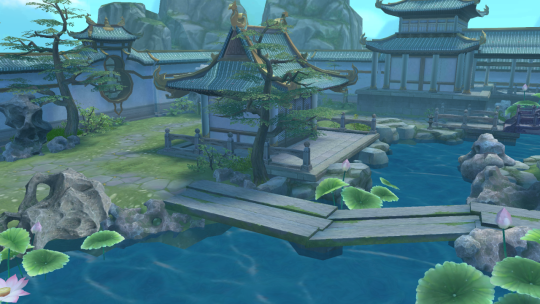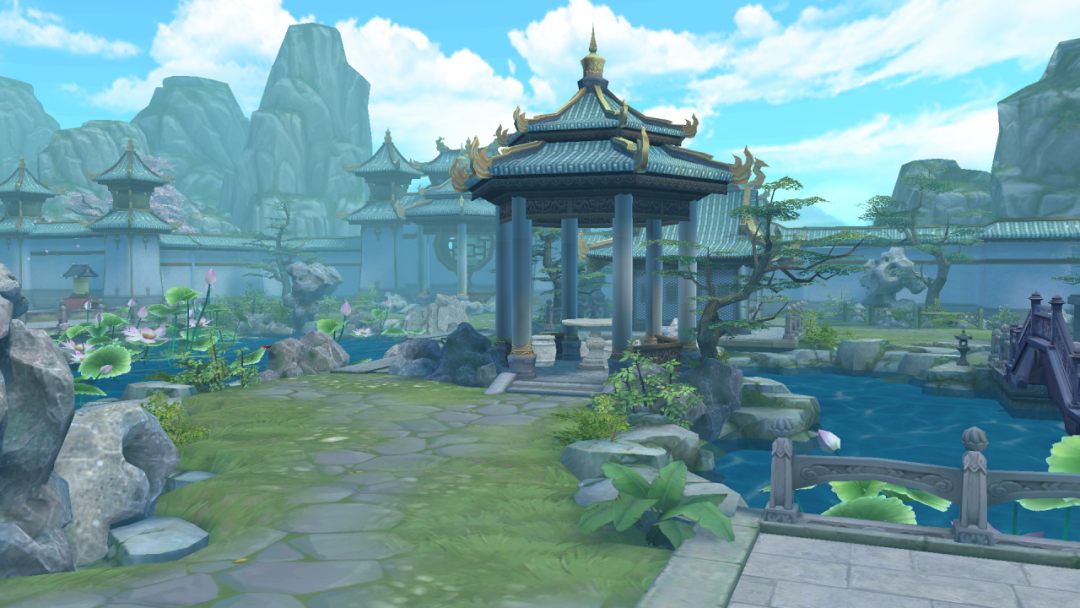 当少侠扩建8级家园后,室外左上角将解锁新的场景区域,满池荷花,独坐亭台好不惬意~