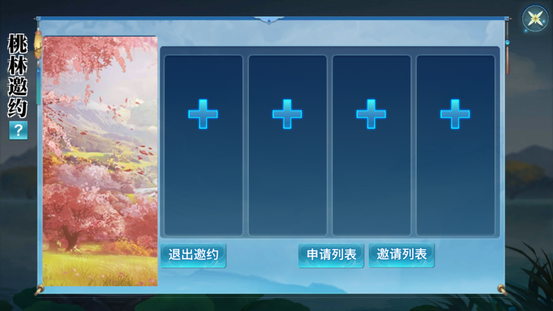 进入后少侠可邀请本服或跨服好友加入队伍,当进入跨服地图“十里桃林”后,将会自动转换为普通队伍。