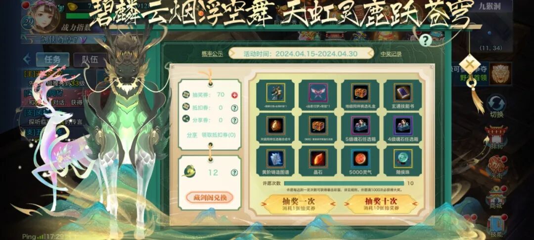 典藏级坐骑·天虹灵鹿、典藏级坐骑·碧麟云烟、觉醒武器自选箱等各类精美奖励惊喜上架兑换区,满足少侠的任何需求!