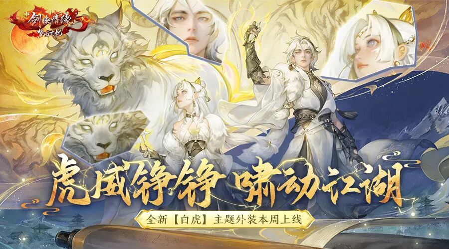 全新白虎主题限定外装【虎威铮铮】要来了! 作为2024资料片限定外装,那该有的排面必不可少,先给少侠们看一张专属海报!