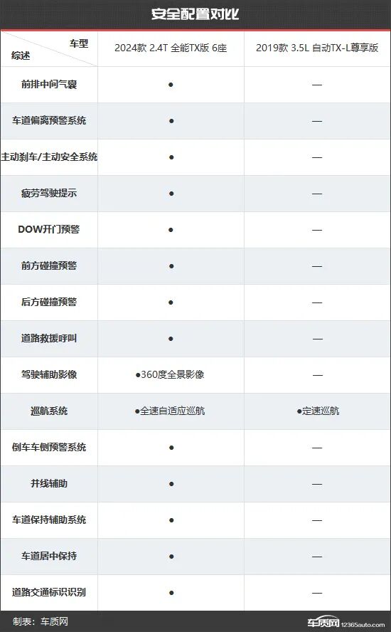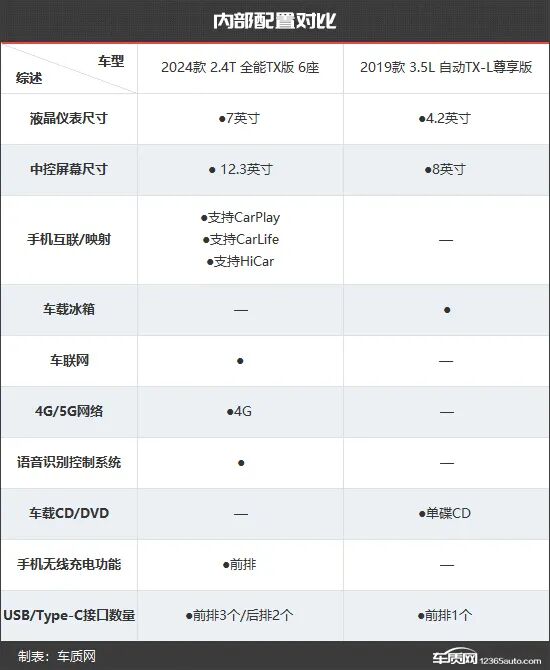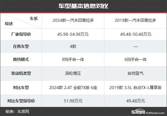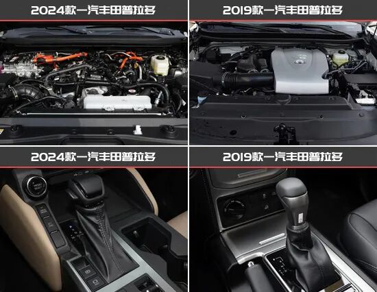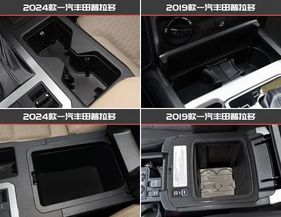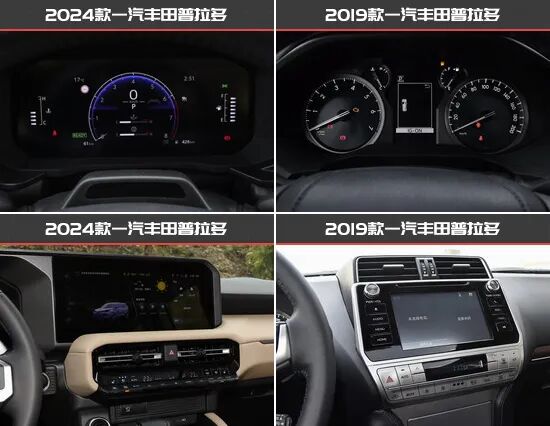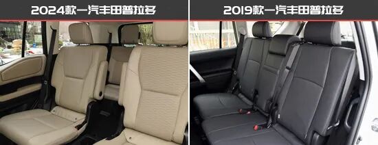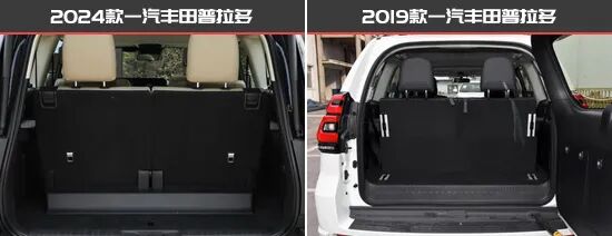 全新设计的方向盘集成了更多功能控制按键,无论整体颜值还是实用性表现,相较老款车型都有提升。方向盘多功能按键采用实体式设计,包括语音控制、多媒体控制等控制按键。 内部配置方面,新款车型的科技感有明显提升,不仅配备了车联网、4G网络、语音识别控制系统等,中控屏幕尺寸和液晶仪表尺寸也有明显增大。同时,新款车型在USB/Type-C接口数量方面也占优,再加上前排手机无线充电功能的加入,在使用便利性方面表现更为完善。比较遗憾的是,新款车型不再配备车载CD/DVD、车载冰箱。 动力方面,新款车型相比老款车型有明显改变,采用2.4T混动系统,由2.4T直列4缸涡轮增压发动机+电动机组成,系统综合功率243kW、系统综合扭矩630N·m。传动部分匹配8挡手自一体变速箱。老款车型采用3.5L自然吸气发动机,最大功率206kW、最大扭矩365N·m。传动部分匹配6挡手自一体变速箱。四驱形式方面,新款车型采用全时四驱,中央差速器结构为托森式差速器,而老款车型配备的是分时四驱。 乘坐空间方面,由于新款车型的车身尺寸和轴距均有增加,因此乘坐空间也得到提升,尤其是后排表现。虽然整体差距不大,但是对于硬派越野车而言,即便是小幅提升也同样值得点赞。老款车型支持的第二排座椅电动调节和加热功能,在新款车型上被取消。座椅布局方面,新款车型采用6座设计,座椅布局为2-2-2式;老款车型采用7座设计,座椅布局为2-3-2式。 车内储物方面,新款车型的中控台进行了重新设计,但前排储物空间的布局相较老款车型变化不大。虽然不是一款以储物空间为卖点的车型,但常规的储物槽和杯架都有配备,整体的储物空间数量也不少,中央扶手箱内部的空间也比较可观,实用性表现并不差。 后备厢空间方面,新老款车型的差异不是很大,在使用第三排座椅的情况下,储物空间都比较小。在第三排座椅放倒之后,都拥有比较可观的储物空间。 新款车型在主/被动安全和驾驶辅助功能方面相比老款车型有着全方位升级,例如增加了前排中间气囊、车道偏离预警系统、DOW开门预警、前方碰撞预警等,巡航系统也升级为全速自适应巡航,整体表现十分亮眼。 作为丰田旗下的明星级越野车,普拉多在中国市场拥有很高的认可度。刚刚上市的2024款一汽丰田普拉多虽然放弃了V6自然吸气发动机,但2.4T混动系统不仅拥有更强的动力输出,还可以大幅降低油耗,即便是用于城市代步,也不用担心油耗太高。因为在性能和配置水平方面有明显提升,2024款一汽丰田普拉多相比老款车型综合竞争力更强。