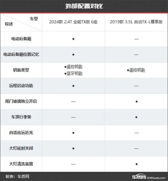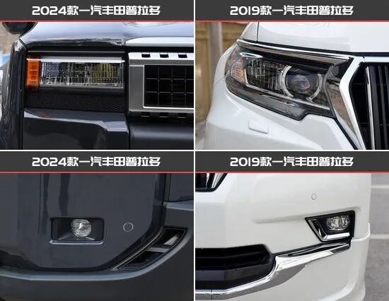 2024款一汽丰田普拉多共推出4款配置车型,对比2019款车型数量有所上升。动力方面,2024款一汽丰田普拉多采用2.4T发动机+电动机组成的混动系统,不再搭载3.5L V6自然吸气发动机。为了进行直观对比,我们选择了2024款一汽丰田普拉多2.4T 全能TX版 6座和2019款一汽丰田普拉多3.5L 自动TX-L尊享版进行比较,以便能够更加直观地看出新老款车型在配置层面的具体差异。 2024款一汽丰田普拉多针对外观设计进行了大幅调整。作为换代车型,外观变化明显也在情理之中。前脸方面,2024款一汽丰田普拉多运用了大量平直的线条,带有明显“方盒子”的味道,与2019款一汽丰田普拉多有着鲜明的反差感。新款车型中网样式比较复古,大灯组采用长方形设计。相比之下,老款车型的多边形前格栅和不规则大灯组要更具时尚感。 在外部配置上,新老款车型可以说是各有取舍。新款车型新增了自适应远近光、电动后备厢以及远程启动等功能,但老款车型上比较实用的尾门玻璃独立开启和车顶行李架等被取消,略有遗憾。 车身尺寸方面,新款车型的“三围”相比老款车型有全面提升,特别是轴距,达到了2850mm,车内纵向空间更为宽裕。新老款车型都配备了18英寸轮圈,新款车型采用双六辐式设计,视觉效果非常不错,经过熏黑式处理后,带来很强的运动感和力量感。 新款车型尾部设计方正,以直线为主。两侧的方形尾灯造型别致,放置位置相比老款车型有明显下降,带来整体视觉重心的下移。新款车型尾门高度较高,后保险杠加入了银色饰板,增加层次感的同时,还让整体效果更精致。 内饰方面,新款车型中控台设计很有层次感,给人感觉非常稳重。仪表盘和大尺寸的中控屏,各个功能分区明确。反观老款车型,虽然经典的中控台造型十分耐看,功能区域划分也清晰合理,但缺少科技感。