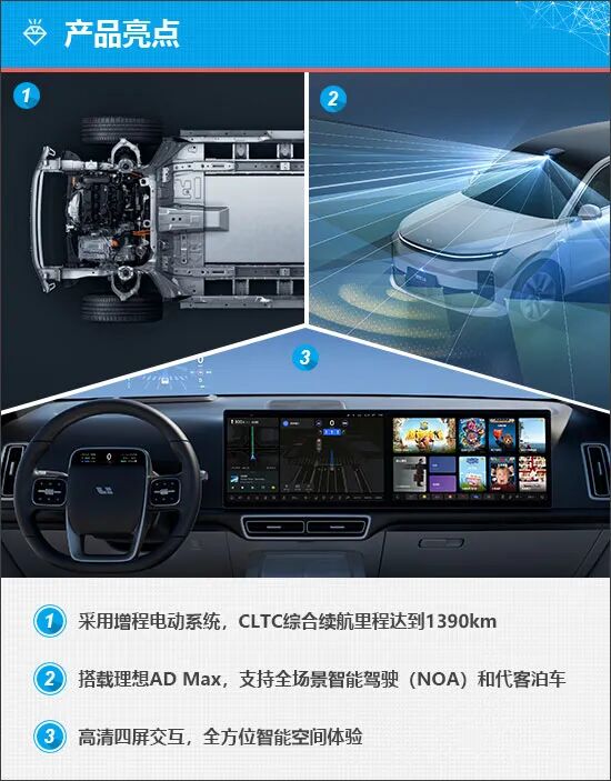 理想L6这次共推出2款车型,均采用增程式动力,售价区间为24.98-27.98万。增程器为1.5T四缸涡轮增压发动机,最大功率113kW。电机布局均为前置+后置双电机,CLTC纯电续航里程为212km,CLTC综合续航里程达到1390km。 理想汽车最大的亮点之一就是采用了增程式动力,在保证纯电驾驶乐趣的同时也避免了里程焦虑。理想L6采用了最新一代磷酸铁锂电池打造的增程式动力,拥有212km的纯电续航(CLTC)以及接近1400km的综合续航(CLTC)。此外,电池系统的全面优化也带来更快的充电速度,理想L6从电量20%-80%快充时间仅需20分钟。 在智能驾驶硬件上,理想L6提供AD Pro和AD Max两种配置。其中,理想L6 Max标配理想AD Max,配备2颗NVIDIA Orin-X智能驾驶芯片,1颗128线高分辨率激光雷达和环绕车身的11颗摄像头,强光暗光也都能看清。此外,理想AD Max将进一步增强高阶智驾能力:1、高速NOA将新增行业第一个收费站通行功能,车辆在NOA状态下可自主通行对应ETC或人工通道闸口,此功能将在完成全国不同类型的收费站验证后,逐步开放给理想用户;2、城市LCC还将增加代驾指挥功能,只需要和理想同学说,“师傅左转”,它可以自动找到下一个路口,并完成左转;3、城市NOA将逐步开放到全国所有可导航路段,无论是城市中心的大路口,还是乡间小道,只要是导航经过的地方,城市NOA都能去,十分智能。 理想L6标配四屏交互,由中控屏、副驾娱乐屏、方向盘安全驾驶交互屏和HUD抬头显示组成,科技氛围营造得十分出色。中控屏、副驾娱乐屏采用15.7英寸3K分辨率大屏,内部标配高通骁龙8295P芯片,结合底层系统深度优化,确保车机交互的流畅性,使理想L6的车机系统屏幕触控延迟不到90毫秒。上述厂家指导价仅代表2024年4月23日的价格