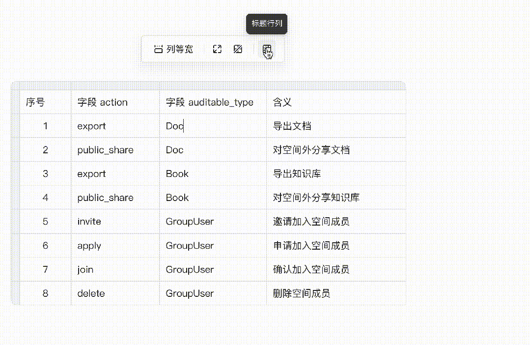 很多人习惯在文档内的表格卡片中书写编号,更显有序,也方便计数。过去不管有多少行,都只能手动输入编号,非常繁琐,增删行之后还得全部手动修改。本月我们支持了在文档表格卡片的最左插入「序号列」,可以从任意行开始自动编号,1,2,3…,而且新增行和删除行都会自动更新编号,多行排序再也不用手动编号了!
