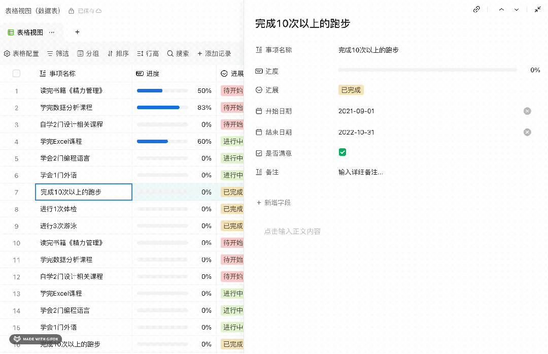 数据表支持新字段:进度、评分