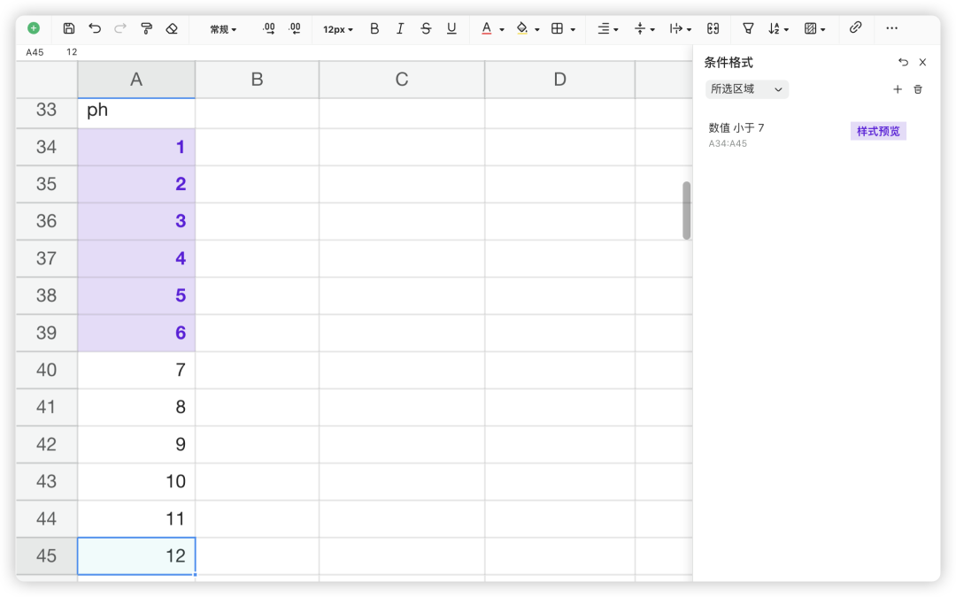 • 一个数据检测,高于某一个数值的内容高亮显示,这样能够一眼就看出不正常的数据,比如快速找出酸性的数据。belike 👇: