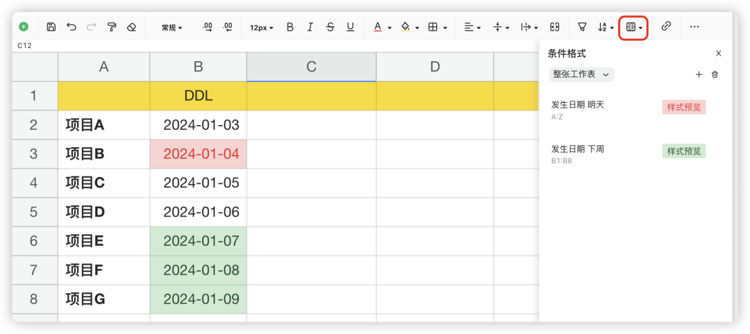 工作表增强条件格式