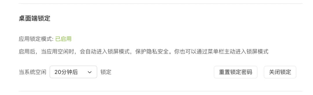 很多用户反馈希望自己撰写的内容在自己离开电脑前的时候能够加一道锁🔒,避免别人误打开后隐私泄露。基于此类呼声,我们在桌面端最新推出了桌面端锁定功能。