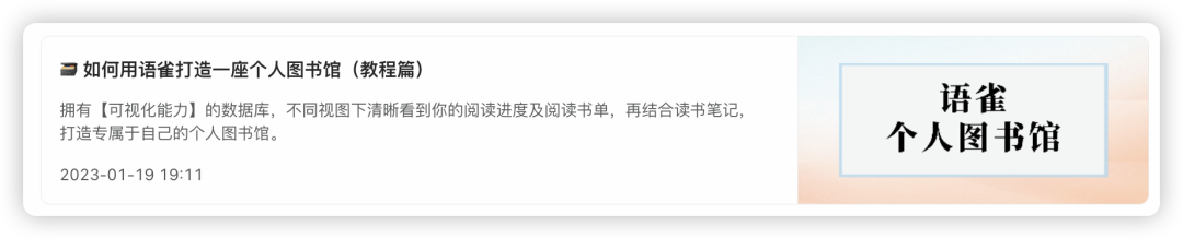 你可以看看:《🗃️ 如何用语雀打造一座个人图书馆(教程篇)》,手把手教你如何打造一座个人图书馆: