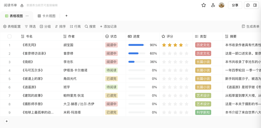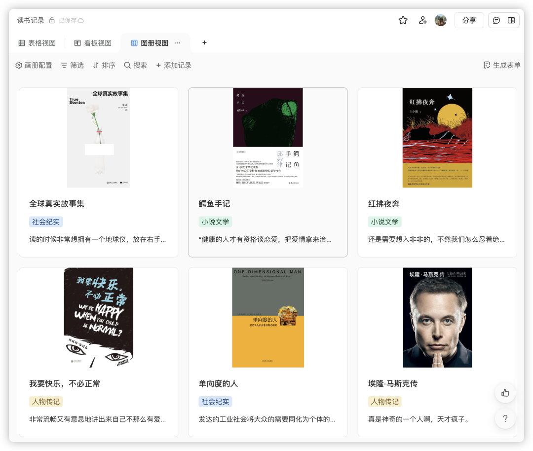 使用语雀的「数据表」可以搭建一个自己的个人图书馆,👇 belike: