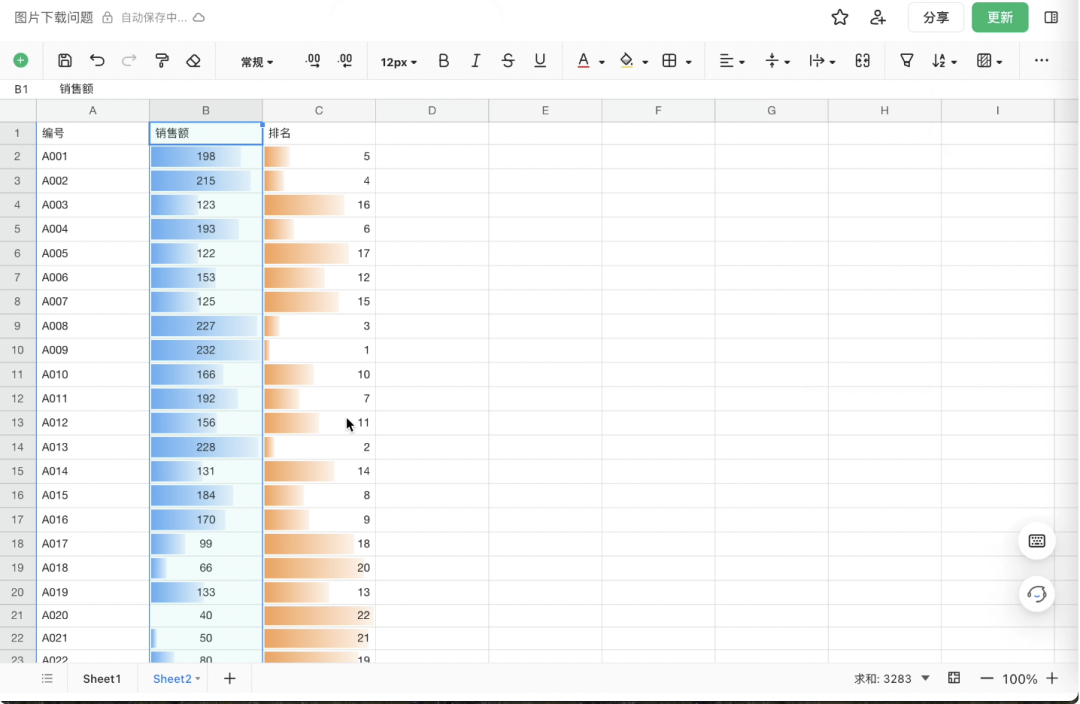 工作表支持数据条