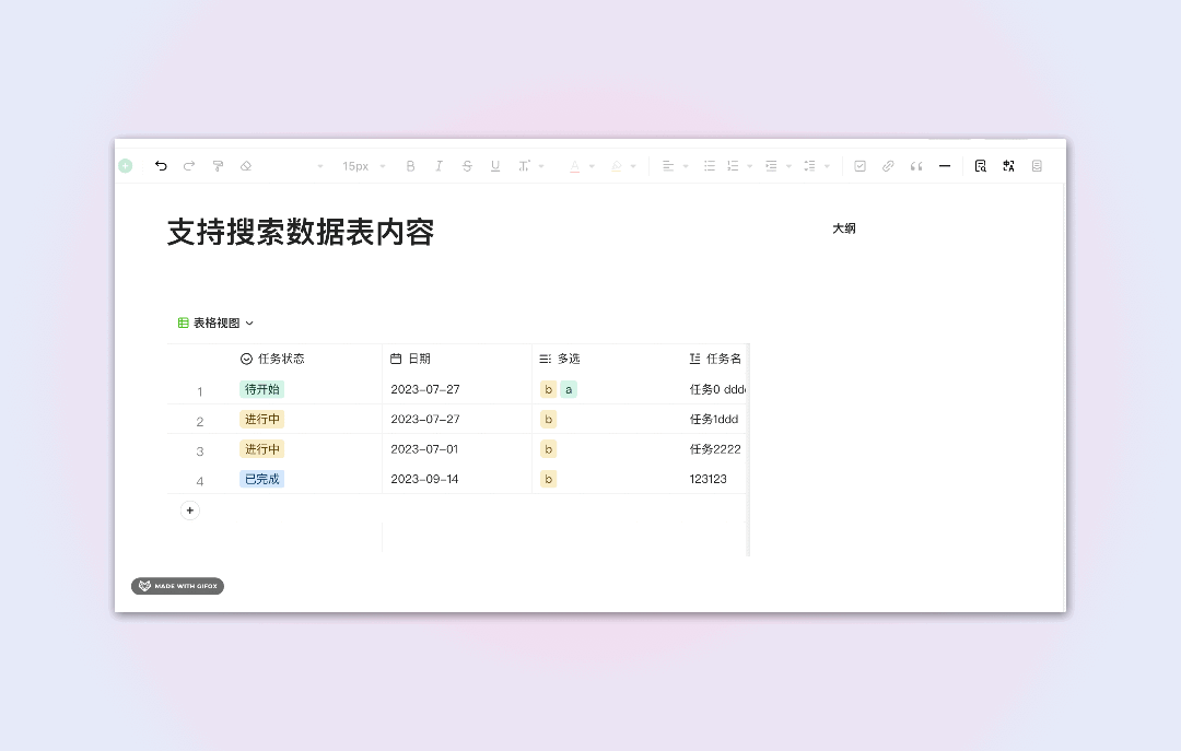想搜索文档内数据表的内容总是搜不到?这次解决文档中数据表痛点,数据表内的内容支持搜索了。👇 如下所示: