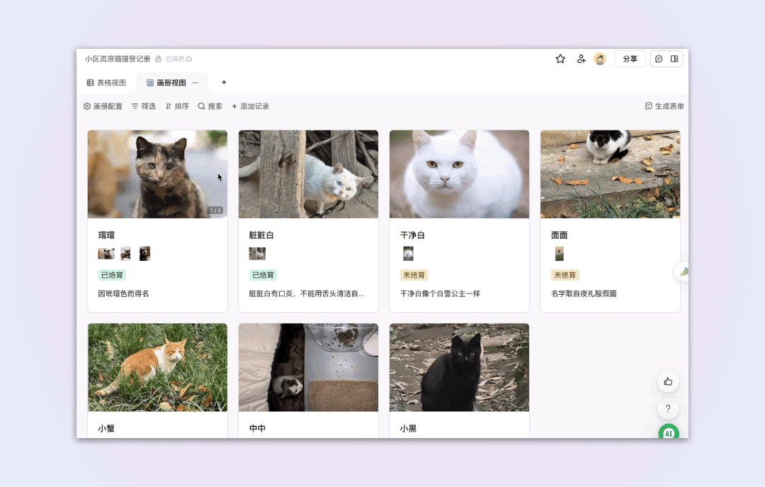 数据表内想插入多张图,又不想添加多个属性占位置怎么办,现在画册视图支持轮播图啦~你想放入正面图、侧面图、俯视图都可以。