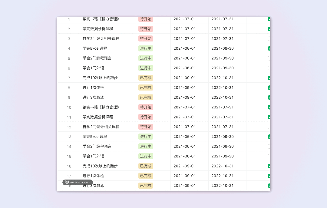 通过更新后的筛选可以快速查看「本周」「上周」「下周」的数据,管理查看项目计划更加一目了然。