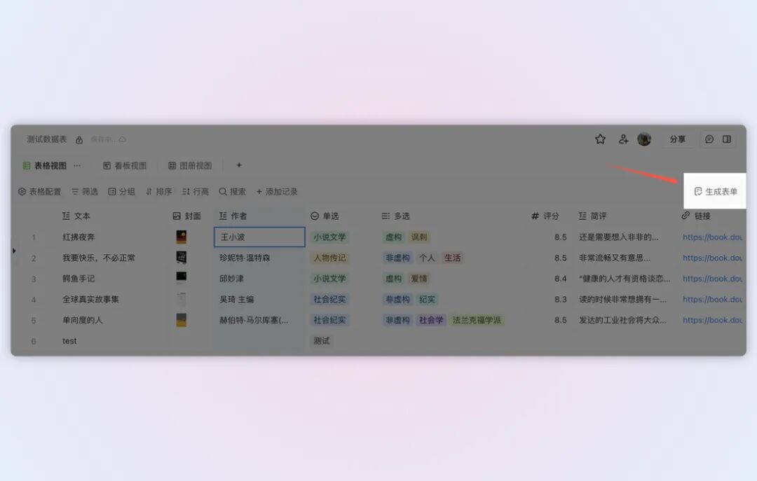 更新后的数据表支持根据当前视图的字段创建「一键生成」对应的表单,表单的内容直接根据当前的视图添加,再也不用再手动调整了,简化操作流程。