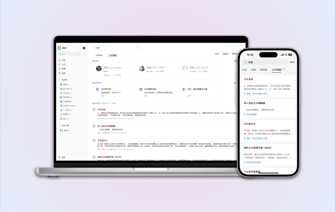 语雀上有很多有趣的共创者,他们创作了很多有价值、有意思的公开内容,这些都是语雀宝贵的知识财富,也值得被发现和被利用起来。现在桌面端与移动端都向网页端看齐,输入关键词即可随时搜索查看公开的语雀内容。马上到元旦了,做出行计划时,也可以在这搜搜攻略哦~