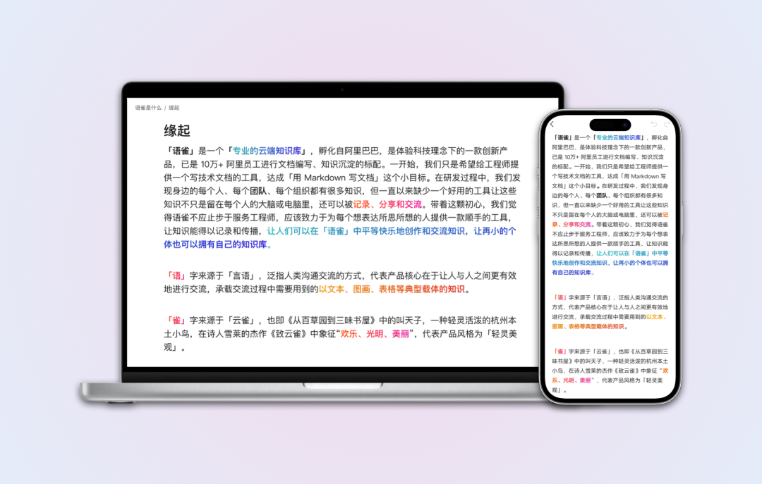 文本颜色新增渐变色,可用于高亮内容,打造酷炫、有科技感的文档。非常适合展示类的场景,如花园、公开页、公告区域、产品帮助文档、需要演示的文档等。