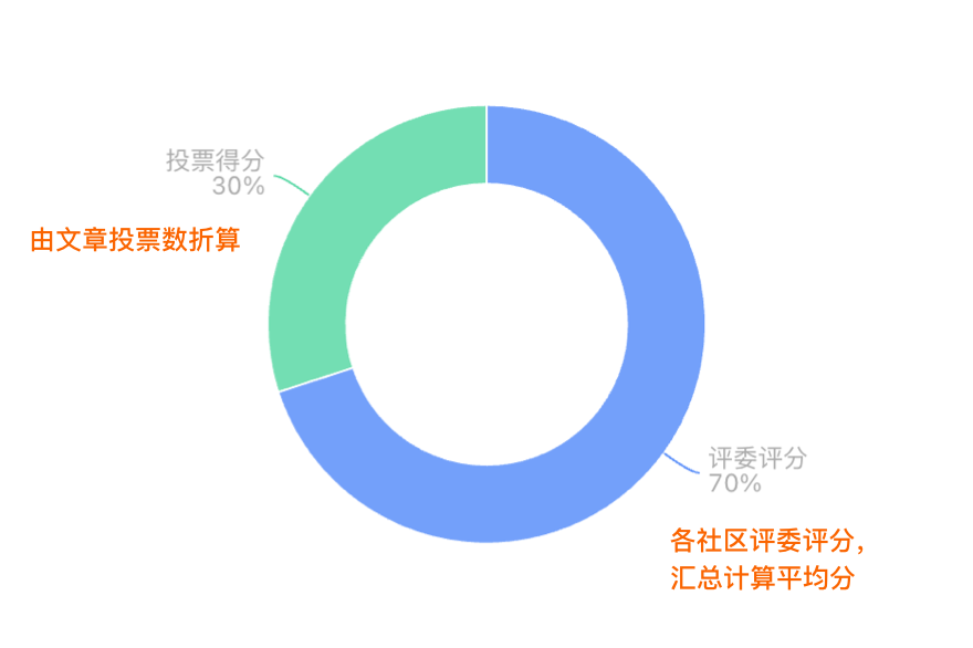 • 奖项评定:总分由专业评委打分 + 投票得分组成,入围的文章会统一在公众号公示 + 投票,投票数加权计分;同时会进行专业评委打分。预计 5 个工作日内在公众号公布最终获奖名单。