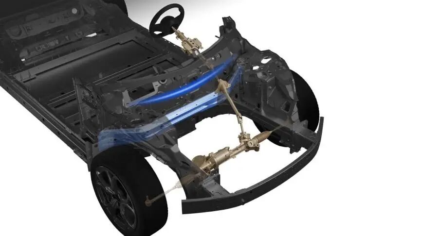 转向前置安全传力架构则属于另一个安全细节升级,即是将转向机构前置,使得转向器与防撞梁不再有干涉的可能,这样传力更加平顺连贯,而且增加了碰撞时防撞结构的抗性形变能力(官方数据为提升50%),同时转向机构也不容易侵入乘员舱。![]()