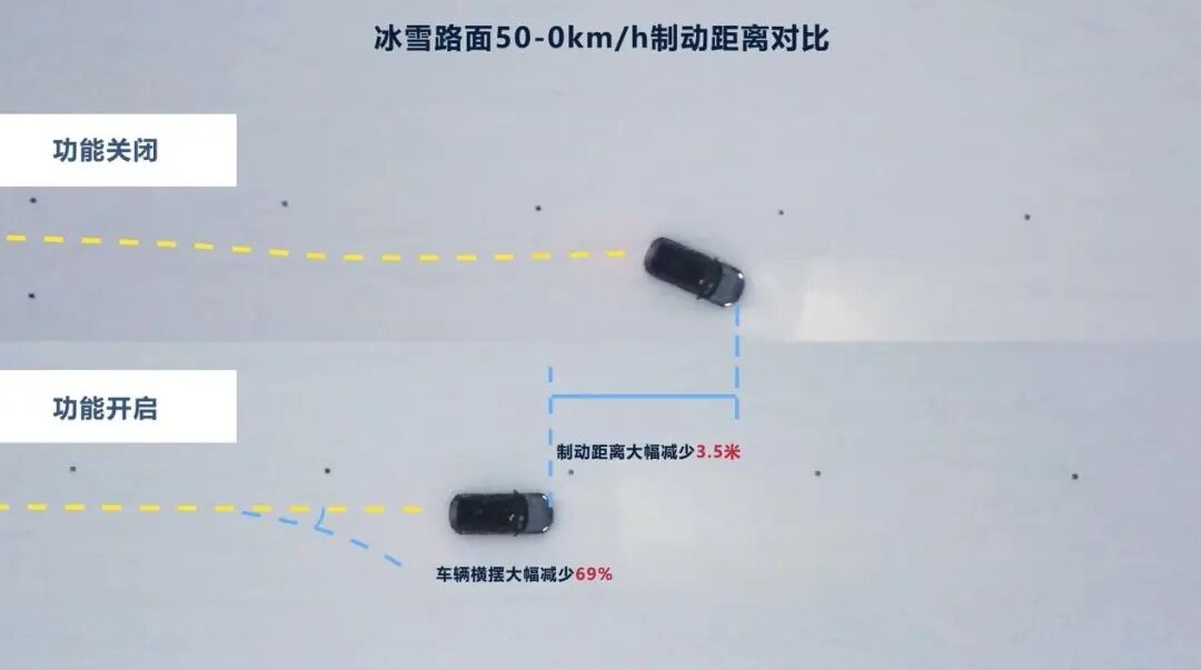 比较重大的升级在于超级iTAC,此前我们也浅析过iTAC技术的基础逻辑,即是在轮速传感器的基础上,增加了电机旋变传感器,系统识别精度提高了300倍,可提前50ms以上预测车轮转速变化趋势。当轮端出现异常,但尚未出现打滑时,系统就已识别到抓地力异常,提前调整轮端扭矩匹配,让车辆恢复稳定。而此次的超级iTAC得到了进一步的升级,据悉,减少冰雪路面制动距离3.5米,制动时车辆横摆降低69%,提升安全性能和驾乘舒适性的同时,扩宽了操控极限。![]()