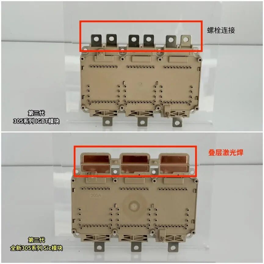 最后,叠层激光焊SiC碳化硅功率模块可以理解为比亚迪在该模块的加工工艺上的突破,我们可以从图中看出区别,叠层激光焊工艺取代了传统的螺栓连接工艺,带来的好处则是大幅降低杂散电感(官方数据:降低75%),提高了电控效率(官方数据:达到99.86%)和过流能力(官方数据:提高10%)。而在实际使用场景中,官方则给出了『CLTC综合效率达92%,中低速市区效率提高7%,续航里程提高超50km』的数据。![]()