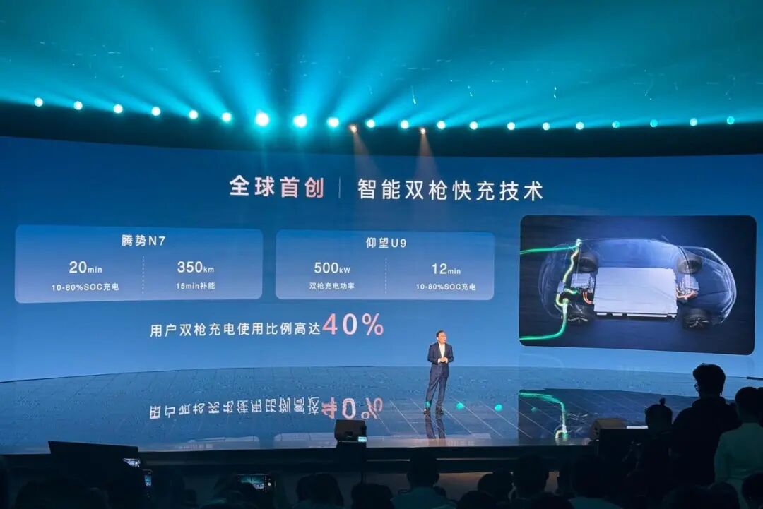 不过,无论是升压还是升流,我还是这个问题:这……难道不是抢电吗?于是,工程师又向我再次重磅介绍了智能双枪超充技术。『该技术在不改变公共快充桩原有硬件基础上,通过两根充电枪同时充电,实现充电功率翻倍。双枪超充可实现最大充电功率500kW,10-80%SOC充电时间仅需12min。』听完了升压、升流以及双枪充电三项技术的介绍,我觉得我的问题也不需要工程师来回答了,相信大家也有了答案,所以,如果你买纯电汽车,充电又十分依赖公共充电设施,那该买哪家应该清楚了吧~~![]()