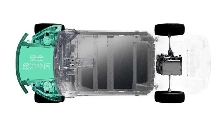 主后驱安全动力架构则是将主驱动总成放在了后桥,比如这次的海狮07EV的单电机车型,其基本逻辑是为前舱留出更多的碰撞缓冲空间(官方数据为前舱安全缓冲空间增加100mm,提升超32%,正碰安全性能提升60%)。个人觉得,除了安全,应该也考虑到让车型拥有更大的前备箱,以及对海狮07EV作为后驱为主的车型的定位考虑。![]()