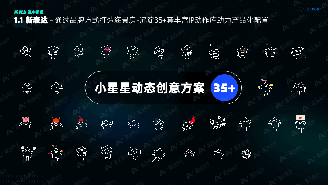 在配色上,应选用与 APP 整体品牌形象相契合的色彩、字体及图形设计,营造独特氛围。遵循盒马 APP 的 UI 框架规范,结合星星自身特性将外形圆润化,选取中黄渐变色作为整个尝新 IP 的主色,与新品的蓝绿、蓝紫渐变色形成互补,既突出 IP 特色,又确保页面美观。![]()