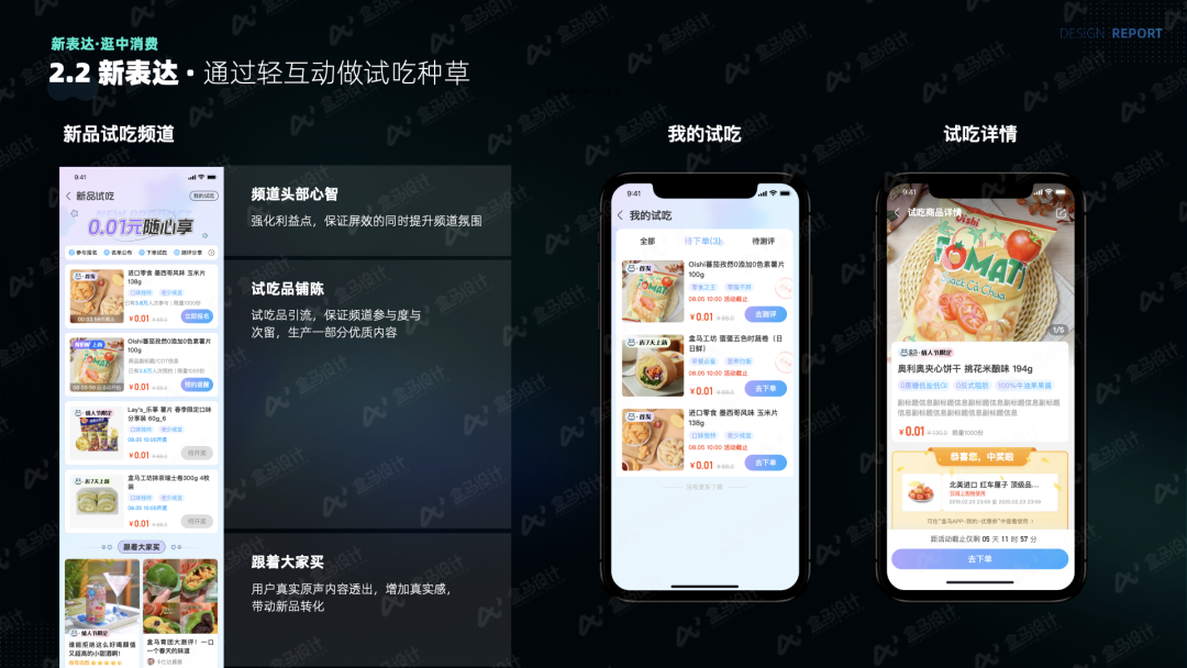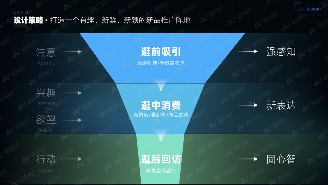 新品是商品结构的重要组成部分,借助原内容阵地的特点和新品的商品力优势,我们希望在盒马用户中建立“尝点新东西,盒马新品一站购齐”阵地心智,构建新品新零售营销通道,探索新品平台化机会,借助内容宣发能力及新品互动活动加强新品的全渠道种草转化。如何打造一个全新的新品频道,通过对应策略帮助业务提升用户黏性并有效推动GMV增长是我们面临的一个挑战。作为生鲜的新零售电商,我们一直致力于挖掘消费者的潜在需求,为消费者提供更好的购物体验和更优质的商品。本文介绍了我们如何从注意、兴趣、欲望到行动四个用户体验流程全面布局,通过“强感知”、“新表达”、“固心智”三个设计策略,打造了一个有趣、新鲜、新颖的新品推广阵地,强化新品阵地心智。