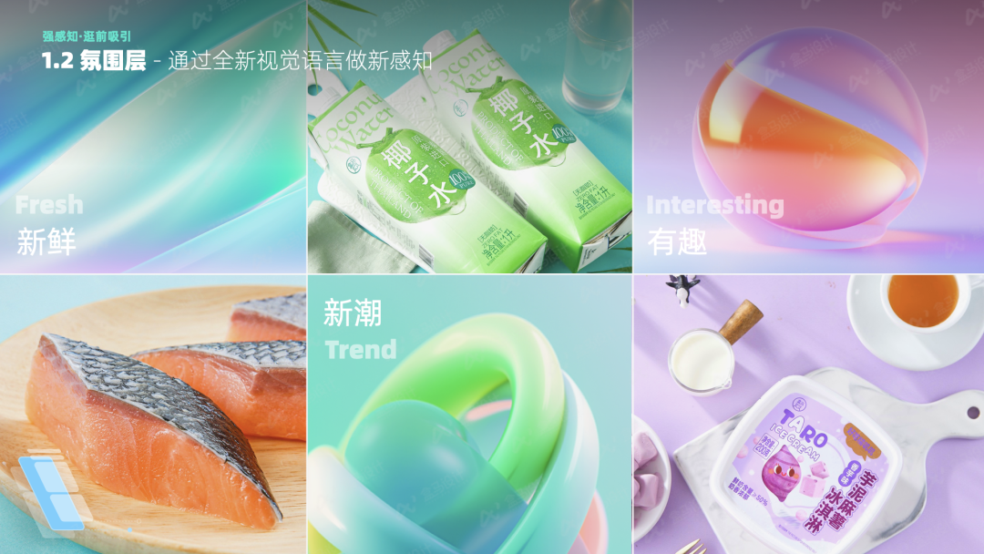 通过收集和整合各类图像、色彩、材质、字体及其它创意元素,将新品频道所期望传达的品牌调性、情感氛围以及用户体验进行直观且具象化的呈现,从而确认新品频道的关键词:新鲜、新潮、有趣,提升用户对新品的认知度与接受度。![]()