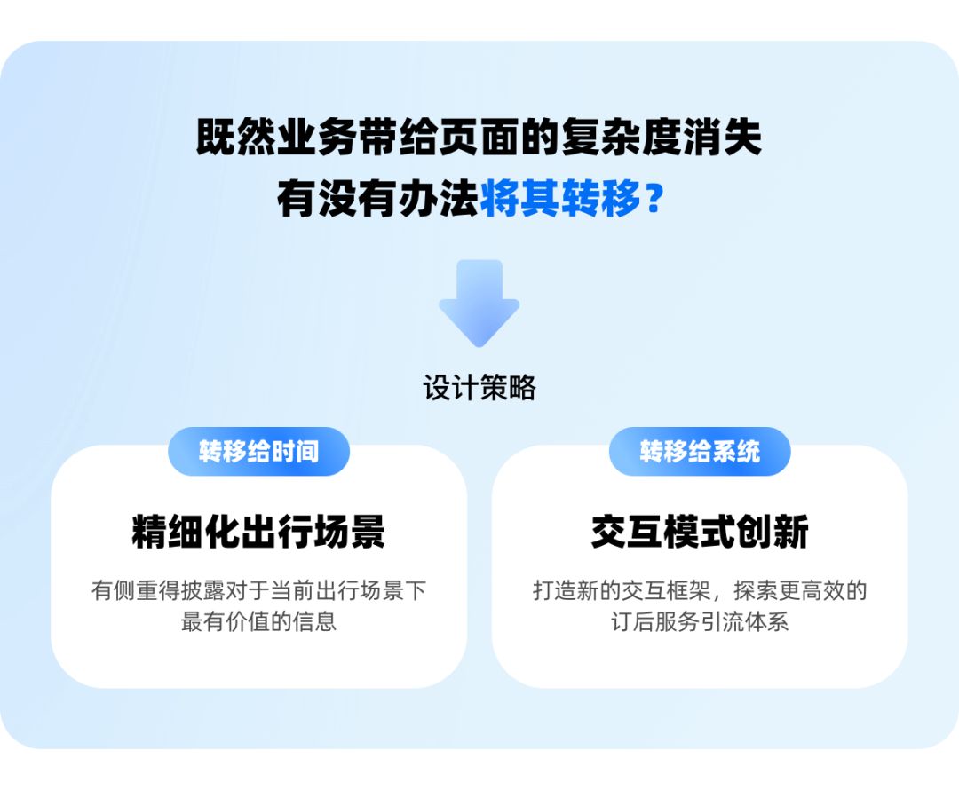 通过设计手段,缓和订后略带冷峻的工具气质,给予用户贴心的出行关怀,积累用户对我们的正向情感,提升NPS。